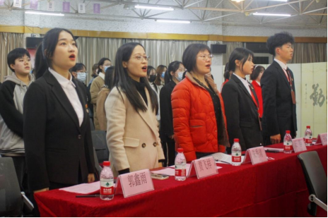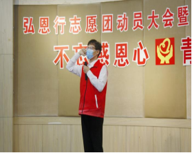 伴随着庄严肃穆的国歌声与《青年志愿者之歌》,本次活动正式开幕。首先,贾飞祥老师带领全体师生回望了自弘恩行成立的点点滴滴,其中离不开的是志愿者们一路的坚持。志愿者们在弘恩行志愿者活动中发光、发热,他们所付出的汗水一直流淌在一件件红马甲上。后续,大会进行国家奖学金、国家励志奖学金、先进个人奖、优秀志愿者、优秀通讯员等荣誉的颁奖。各位获奖人员依次上台领奖并发表感言,他们每个人努力践行“感恩于心,回报于行”的初心使命,在社会实践中砥砺前行、传递志愿精神。紧接着,弘恩行志愿团郭鑫雨上台回顾了弘恩行志愿团的光荣历程、付出和收获,并正式把新的光荣使命授予新一届热爱与向往志愿团体的志愿者们。而后志愿者代表陈震东学长带领全体同学宣誓,激昂的宣誓词响彻会场。