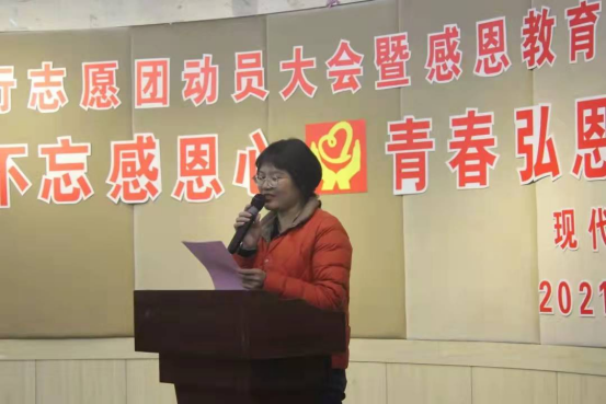 为积极倡导“以诚立身、信守承诺,知恩图报、自强不息”的意识形态,促进受助学生的全面成长成才,现代管理学院于2021年12月13日在多功能厅举办了现代管理学院弘恩行志愿团动员大会暨感恩教育系列活动。大会以“线上直播+线下大会”形式开展,出席活动的有现代管理学院党总支副书记朱秀清,分院团总支书记贾飞祥,分院各类奖助学金获得者代表及志愿者代表,其他奖助学金获得者、广大学生志愿者线上参与。