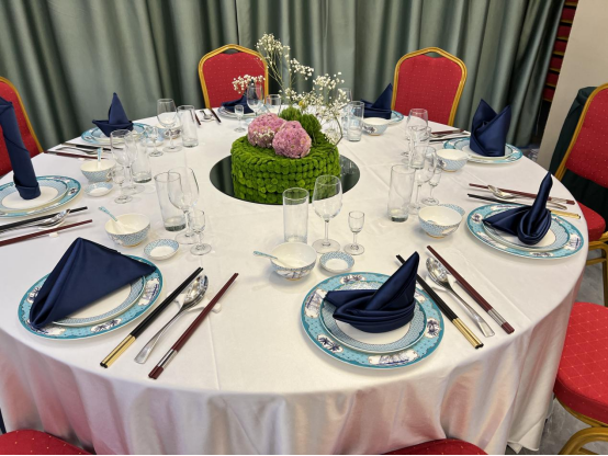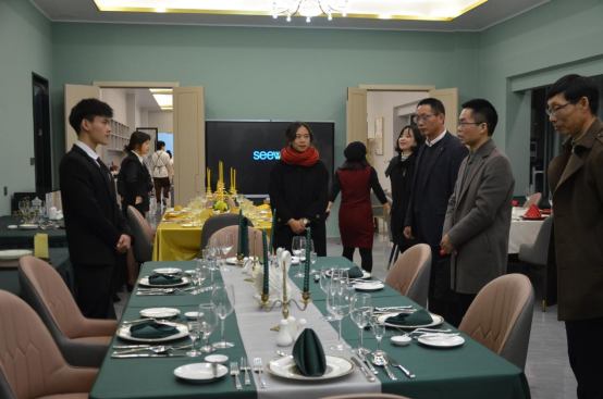 酒店管理与数字化运营专业围绕“匠 · 新”主题,学生以中西餐摆台、开夜床、咖啡拉花、调酒、插花、茶艺为媒介,展示各具特色的毕业设计作品。