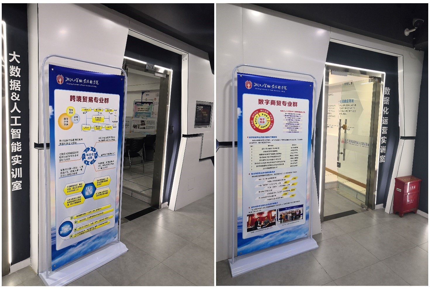 国际商贸学院2022届毕业设计展将于2021年12月29日至2022年1月4日期间开展,数字商贸专业群和跨境贸易专业群的展厅分别安排在3505和3601实训室。国际商贸学院紧扣人才培养定位,强调学生多元发展,在毕业设计的选题类型上进行了大力的改革。各专业分别新增了商务口语、商务直播、视觉设计、跨境营销策划、法语短剧表演、项目分析报告、物流技术设计等选题类型。本次毕业设计展以“立足实践,多元发展”为主题,将对本届毕业设计方案改革的成果进行展现。