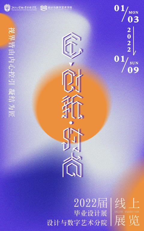 设计与数字艺术学院毕业设计展展出时间为2021年1月3日-2022年1月7日,展出内容在官网和微信公众号推送。