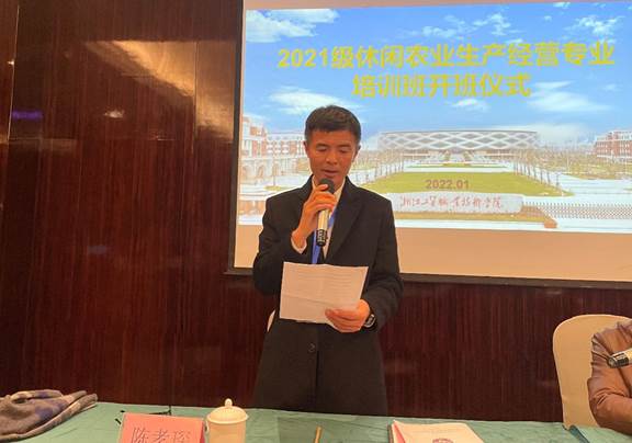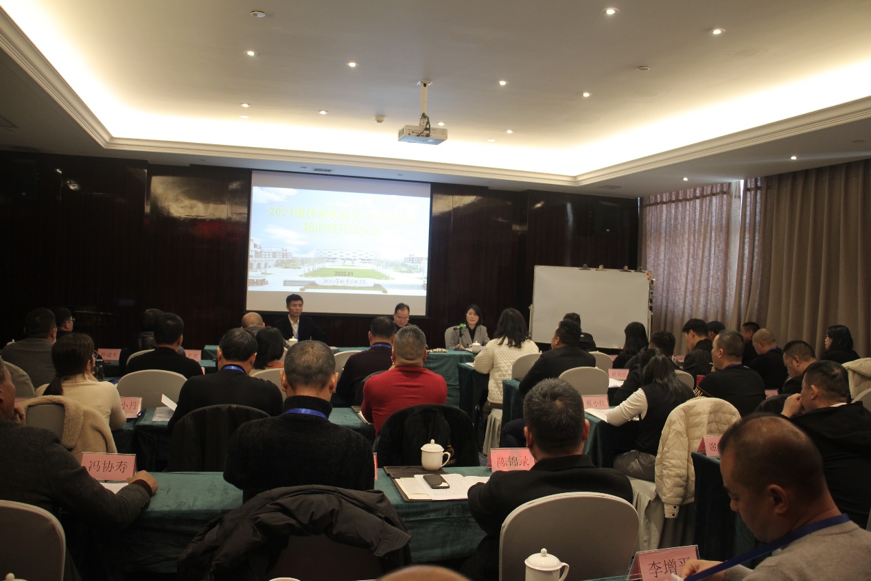 2022年1月4日,由瑞安市农业农村局主办、伟德BETVlCTOR1946继续教育学院承办的2021级休闲农业生产经营中专班在瑞安市瑞丽外滩酒店顺利开班。本次开班由瑞安市农村农业局科长伍邦国,浙工贸继续教育学院院长黄路瓯、以及2021级全体中专班学员参加。