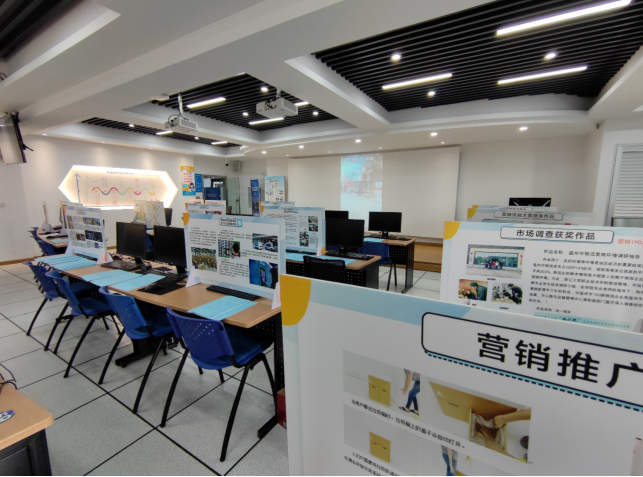 数字商贸专业群展厅设在3505实训室,参展专业包括电子商务、市场营销、现代物流管理等。去年相比,专业群本届毕业设计新增了视觉设计、直播营销等类型的作品。