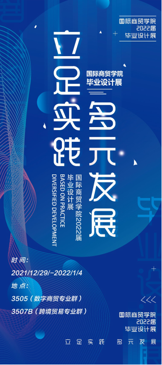 2021年12月29日-2022年1月4日期间,国际商贸学院顺利举办了2022届毕业设计展。本届毕业设计展以“立足时间,多元发展”为主题,设有“数字商贸专业群”和“跨境贸易专业群”两大展厅,地点为3号楼5楼。