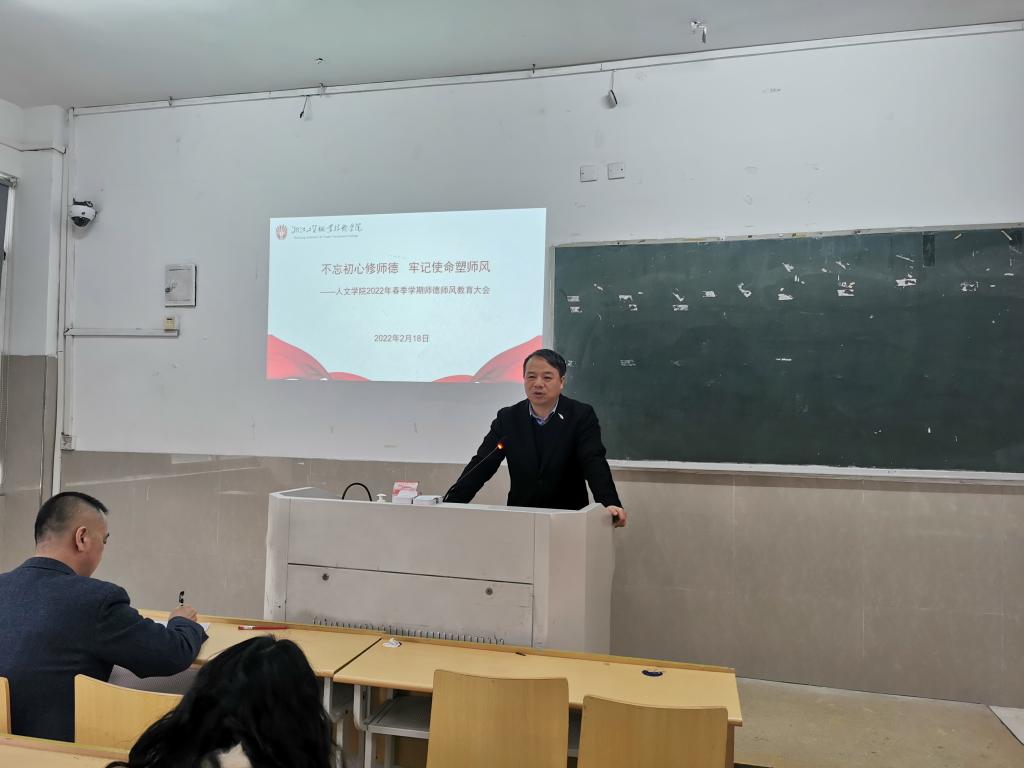 2月18日下午,人文学院2022年春季学期全体教职工大会在府东路校区1301教室召开。人文学院全体教职工参加会议,会议由分院书记林海春主持。