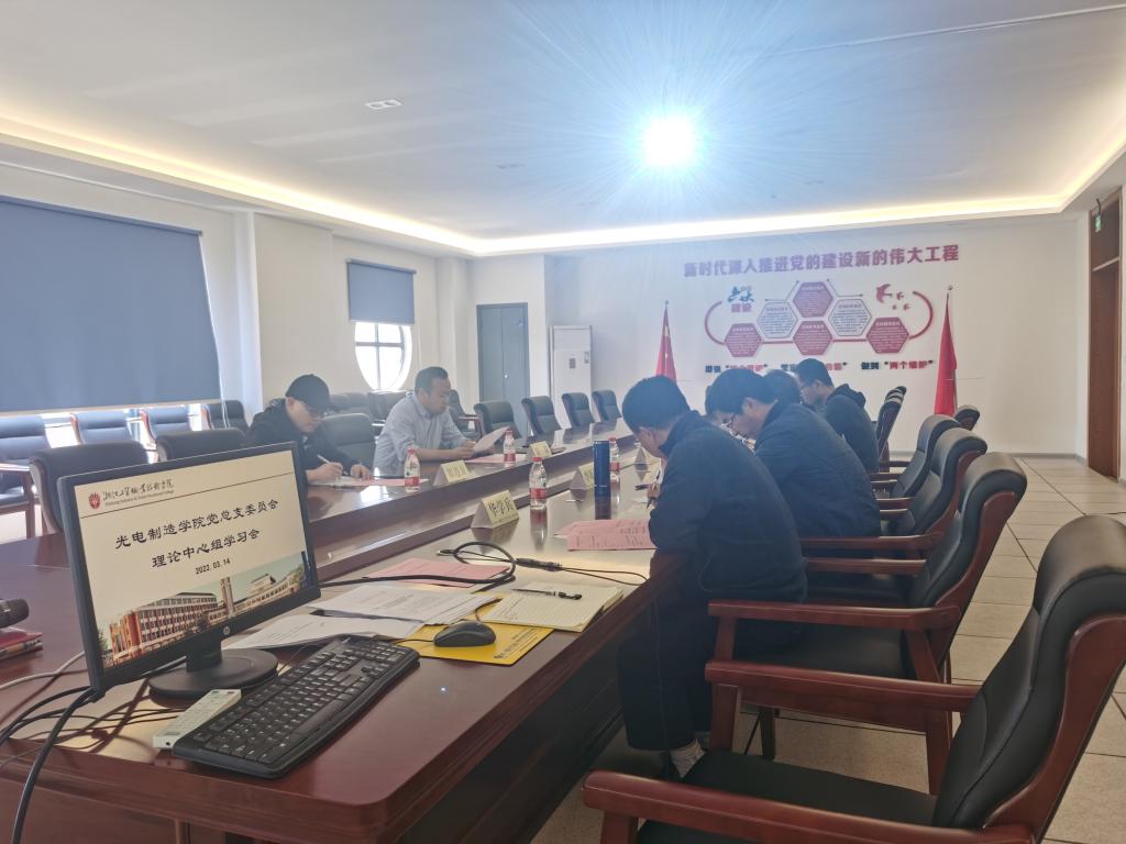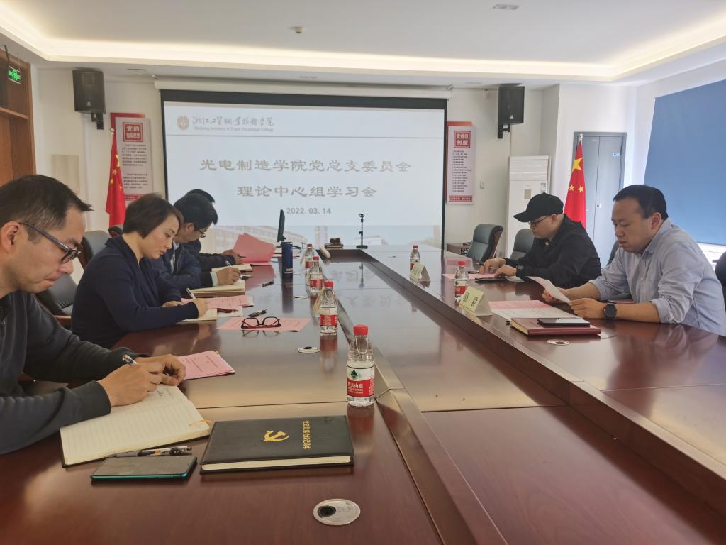 3月14日下午,光电制造学院党总支理论中心组举行学习会,专题学习习近平总书记在中央党校(国家行政学院)中青年干部培训班开班式上的讲话精神。班子成员参加会议,会议由光电分院党总支书记骆毅主持。