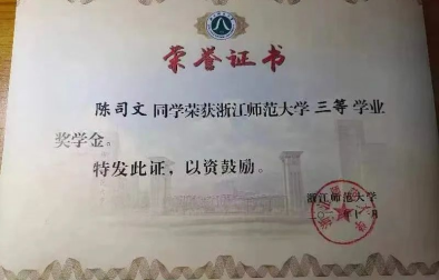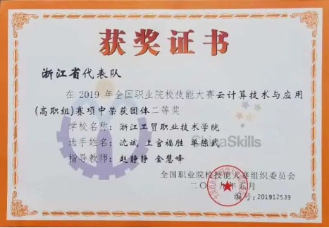 2017年单陈武同学就读于本校软件技术学徒班,曾获得浙江省第十八届大学生多媒体作品设计竞赛中荣获高职组网站类一等奖。2019年在全国职业院校技能大赛云计算技术与应用(高职组)赛项中荣获团体二等奖。2020年升入浙江海洋大学,2022年考入北京信息科技大学研究生。