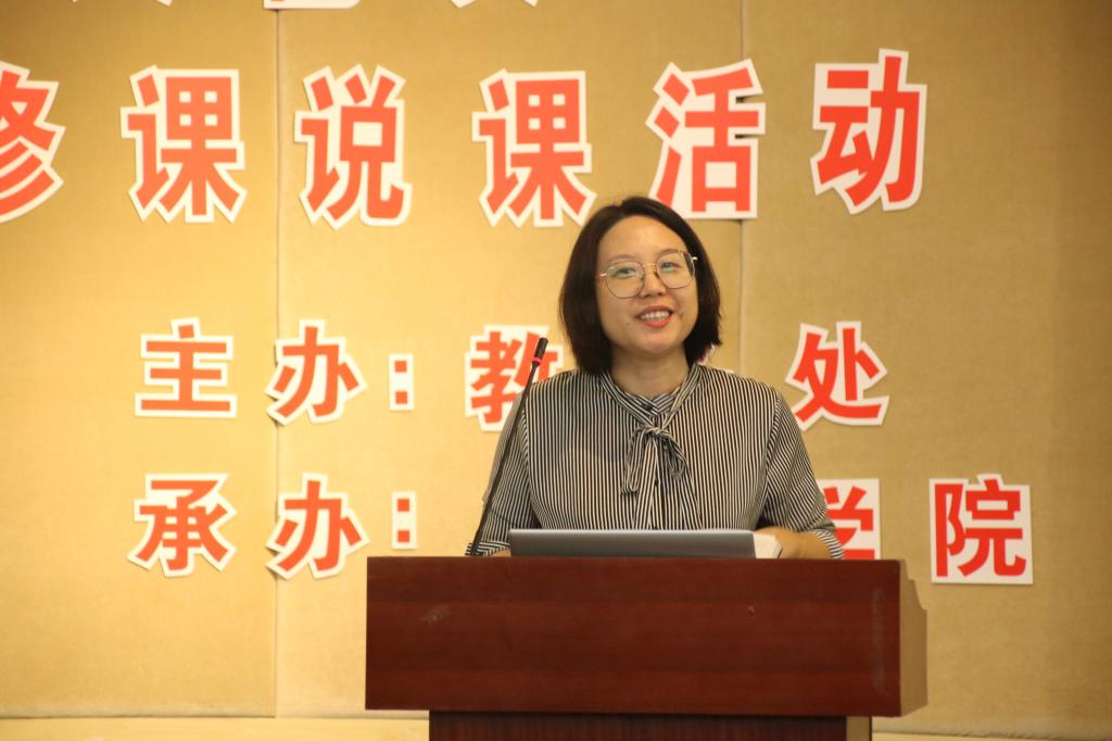 “四说”主题教研活动是教师钻研教材、探讨教法、不断提高课堂教学水平的重要手段,更是促进教师专业化、提升专业核心素养的有效途径。参加此次“四说”主题教研活动的公共必修课共十个教研室,对《毛泽东思想和中国特色社会主义理论体系概论》《大学语文》《大学英语》《创新创业教育》《高等数学》《公共体育》《心理健康教育》《信息技术》《职业发展与就业指导》《思想道德与法治》等课程从教学理念、学情分析、教学内容环节、教学方法、教学过程、教师素养等方面进行汇报,学校专家进行了现场提问。