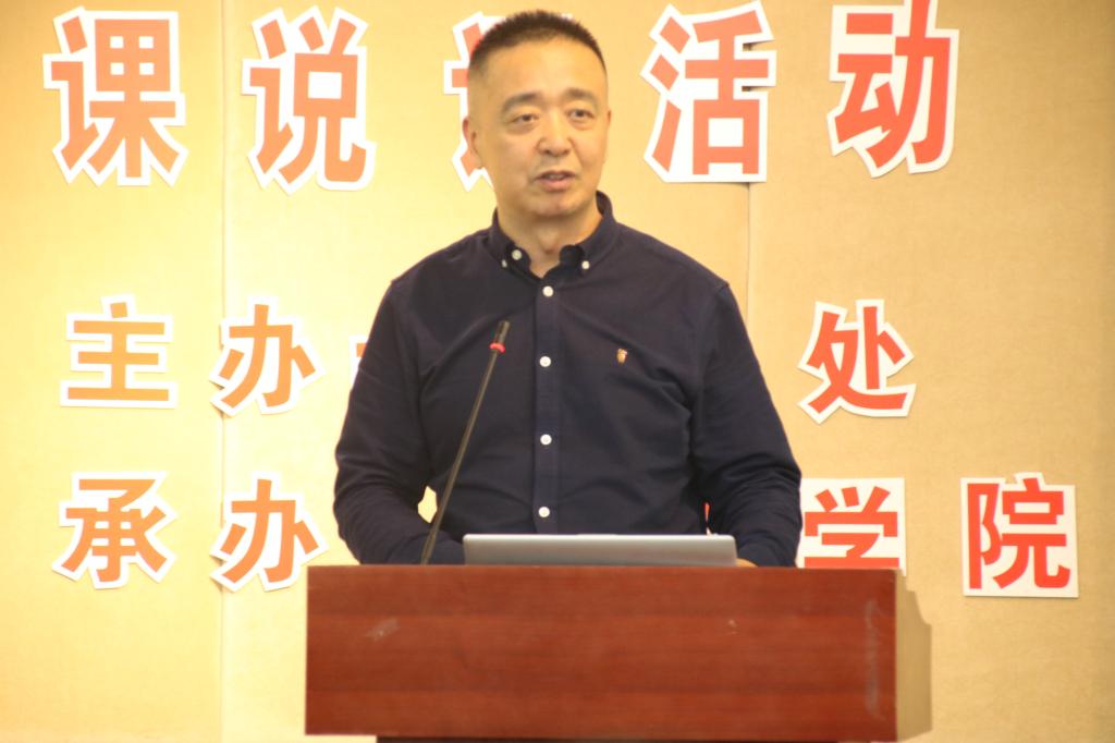 为提高我校公共必修课的教学质量,搭建教师相互学习交流平台,进一步提升职业院校教师综合素质、专业化水平和创新能力,打造高水平、结构化教师教学团队,5月13日下午在府东路校区多功能厅开展“四说”主题教研之公共必修课说课活动,此次教研活动由教务处主办,人文学院承办。学校党委委员、教务处处长贾永枢、国际商贸学院副院长陈碎雷、校督导朱杨琼、孟祥玲、张志国等老师担任专家组成员,人文学院全体教师及其他分院系公共课教师参加活动,人文学院院长杨松涛主持。
