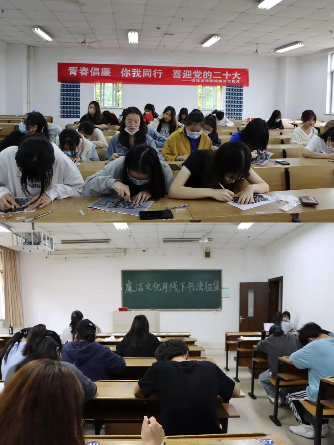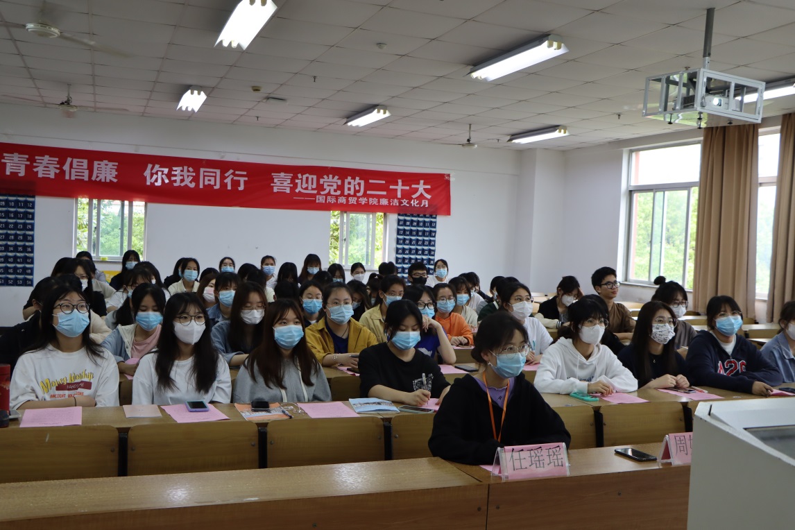 为贯彻落实“清廉工贸”建设,形成 “学廉、知廉、崇廉、倡廉”的良好校园氛围,5月11日下午,国际商贸学院组织开展以“青春倡廉 你我同行 喜迎党的二十大”为主题的廉洁文化建设月作品征集活动,本次活动由国际商贸学院组织员周妍妍老师主持,国际商贸学院30余位学生参加。