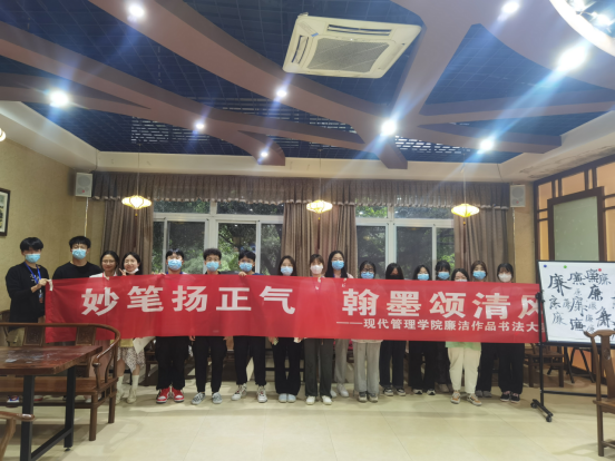 为迎接党的二十大胜利召开,发挥廉洁文化的导向教育激励作用,设计学院党总支承办学校2022年校园廉洁文化精品征集活动,以“以清为美、以廉为荣”为主题,宣传廉洁文化与知识,提高广大学生的廉洁素养。现代管理学院学生党支部积极响应活动号召,5月13日下午,分院学生党支部在大益茶室举办以“妙笔扬正气,翰墨颂清风”为主题的廉洁书法大赛。