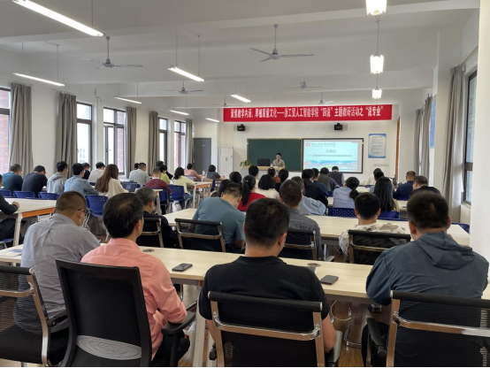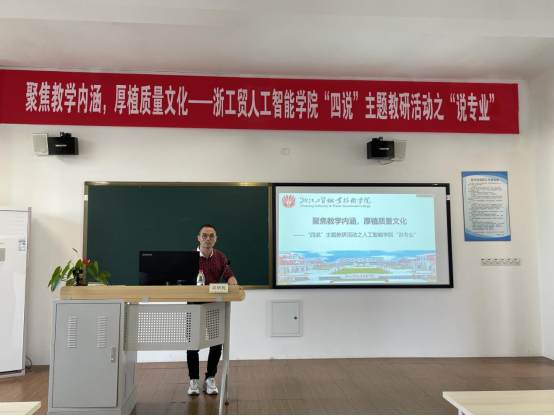为厘清专业发展思路,找准专业发展方向,进一步深化专业内涵建设,助推学院“双高“专业群高质量发展,根据学校”四说“专题教研活动工作安排,5月13日下午13:30我院在人工智能学院楼409教室组织开展”四说“系列主题教研活动之”说专业“活动。本次活动由人工智能学院副院长章增优主持,专家组评委由学校高职研究所所长程有娥、教务处副处长石娜、人工智能学院院长赵秀芝、学校督导钱冬云教授和李文华教授担任,分院全体教职工参加此次活动。