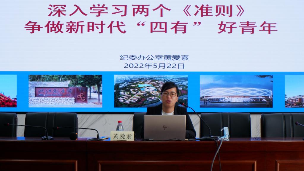 学校纪委办公室主任黄爱素以《深入学习两个准则争做新时代“四有” 好青年》为主题,讲述了当今社会反腐败斗争严峻形势,倡导各位学员争做新时代“四有” 好青年,从身边的细微之处着眼,杜绝腐败现象的滋生,以包拯、黄大年、周恩来等廉洁代表人物为榜样。同时,她还讲解了《中国共产党廉洁自律准则》和《关于新形势下党内政治生活的若干准则》两个文件,为学员们准确把握文件精神实质提供很强的指导作用。