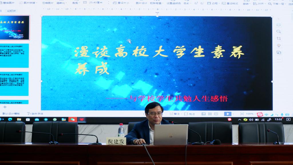 培训会上,学校党委副书记倪建发以《漫谈高校大学生素养养成》为主题作专题讲座,他带领学员们重温习近平总书记在中国人民大学的讲话,教诲学员们要牢记总书记青春寄语,立志民族复兴,不负韶华,不负时代,不负人民,在青春的赛道上奋力奔跑,争取跑出当代青年的最好成绩。倪书记还带领学员们回顾中国共产党的百年辉煌历程,让大家再一次感受党领导中国人民实现从站起来、富起来到强起来的历史性飞跃,使学员们得到了精神洗礼,思想境界得到升华。