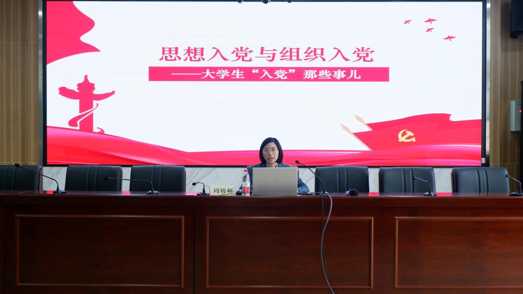 国际商贸学院组织员周妍妍以《思想入党与组织入党》为主题展开授课,她提出学员们不但要积极争取组织入党,更要做到思想上入党,怀揣对中国共产党及其伟大理论的信仰,端正入党动机、树牢政治标准、强化宗旨意识。不断深化党史学习,以实际行动践行“组织上入党一生一次 思想上入党一生一世”的坚定誓言。