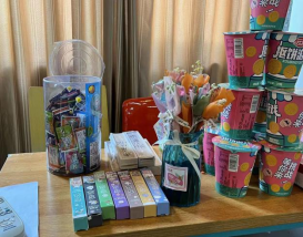 为了活跃现场氛围,建立良好关系,首先进行盲盒游戏。一个个爱心下隐藏着不同的童趣礼物:花朵棒棒糖、解压饼干、绿色盆栽、盲盒圆珠笔、游戏木棒、跳跳糖等。在游戏中回味童年味道,感受童年快乐。简单的开场游戏后,辅导员黄丹华老师介绍5月25日是一个特殊日,是大学生心理健康日。她提到节日设置的初衷、核心及意义:5·25与“我爱我”谐音,提醒大学生珍惜生命关爱自己,了解自我接纳自己,进而提高自己的心理素质,爱别人爱社会。