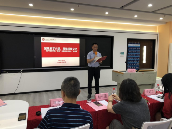 为进一步深化课程改革,推进我院课程建设,提升教学质量和人才培养质量水平,根据《伟德BETVlCTOR1946“四说”主题教研活动实施方案》要求,5月27日下午,现代管理学院举办“四说”主题教研活动之“说课程”。活动邀请了高职研究所所长程有娥教授、人文学院原院长尹清杰教授、现代管理学院副院长叶珺君、现代管理学院大数据与会计专业主任王立新、现代管理学院旅游专业张海琼担任此次“说课程”活动专家评委,现代管理学院党总支书记项光春、现代管理学院院长王国银及全体教师参加了此次活动。