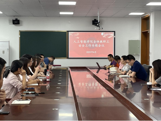 为贯彻落实学校上级有关会议精神,确保学院安全平稳运行,6月3日下午,人工智能学院在414会议室召开安全稳定工作专题会议。人工智能学院院长赵秀芝主持会议并讲话,副书记洪长存、副院长章增优以及学院全体教职工参加此次会议。