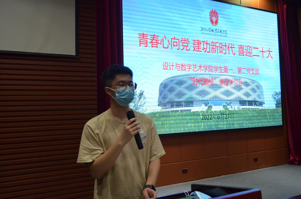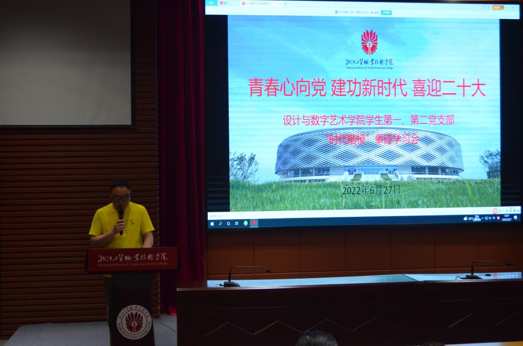 为深入贯彻学校党委关于在师生中广泛开展向钱海军同志学习活动的通知要求,6月27日设计与数字艺术学院学生第一党支部、学生第二党支部在学术报告厅组织全体师生党员、学生干部代表召开青春心向党、建功新时代、喜迎二十大“时代楷模”事迹学习会。