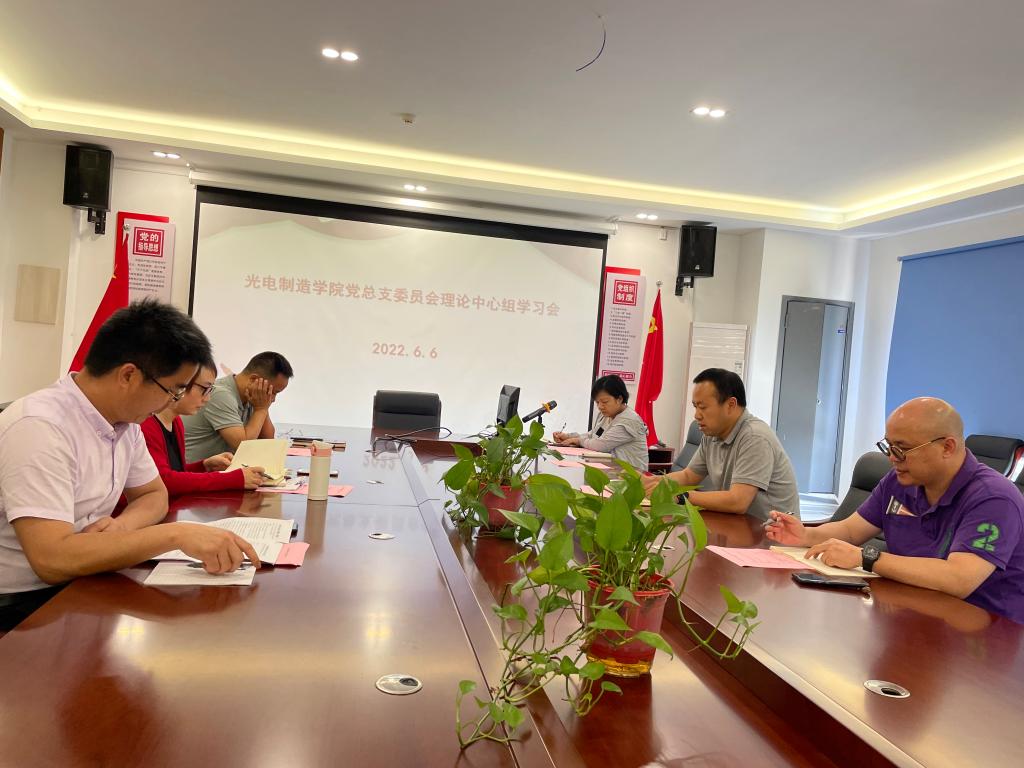 6月6日下午,光电制造学院党总支召开理论中心组学习,集体学习全省职业教育大会精神和《信访工作条例》,全体党总支委员参加,会议由党总支书记骆毅主持。