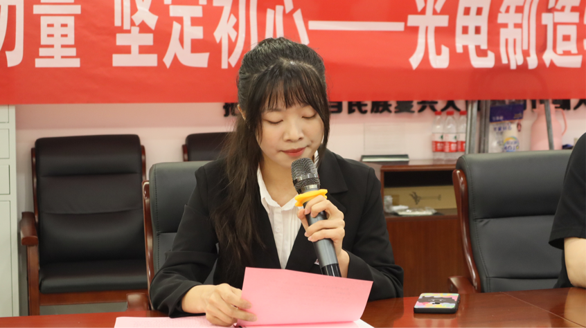 张瑞芳同学代表光电制造学院的学弟学妹,向即将翻开新一页人生篇章的学长学姐们送上最真诚的祝福,祝愿他们在即将踏上的全新征途中,开拓一片属于自己的天地。