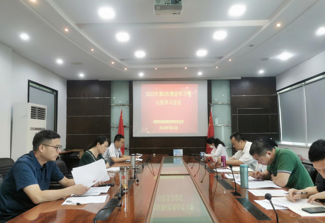 7月11日下午,技师与继续教育学院召开2022年第6次理论学习中心组学习会,深入学习贯彻浙江省第十五次党代会精神。会议由党总支书记程瑞存主持,理论学习中心组全体成员及部分党员参加。