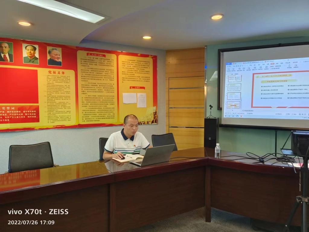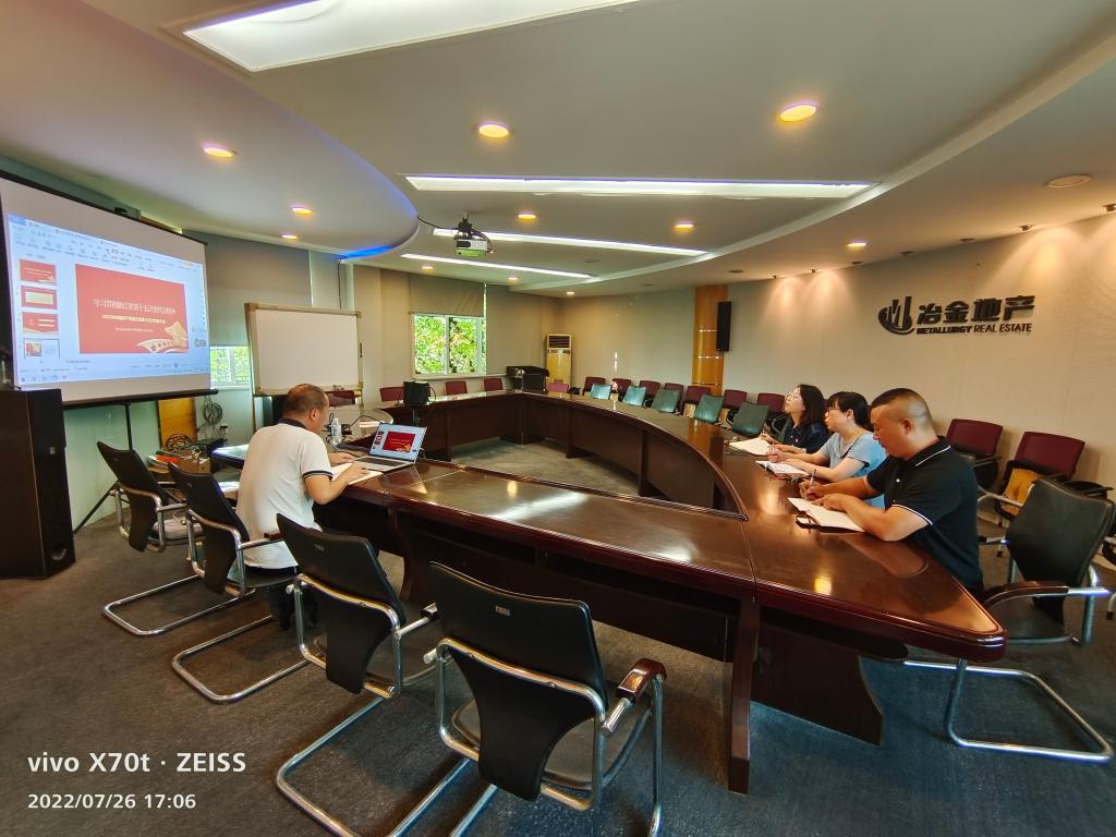 2022年7月27日下午,温州冶金房地产开发有限公司党支部召开“学习贯彻省第十五次党代会精神”专题学习会,党支部副书记张禹主持。