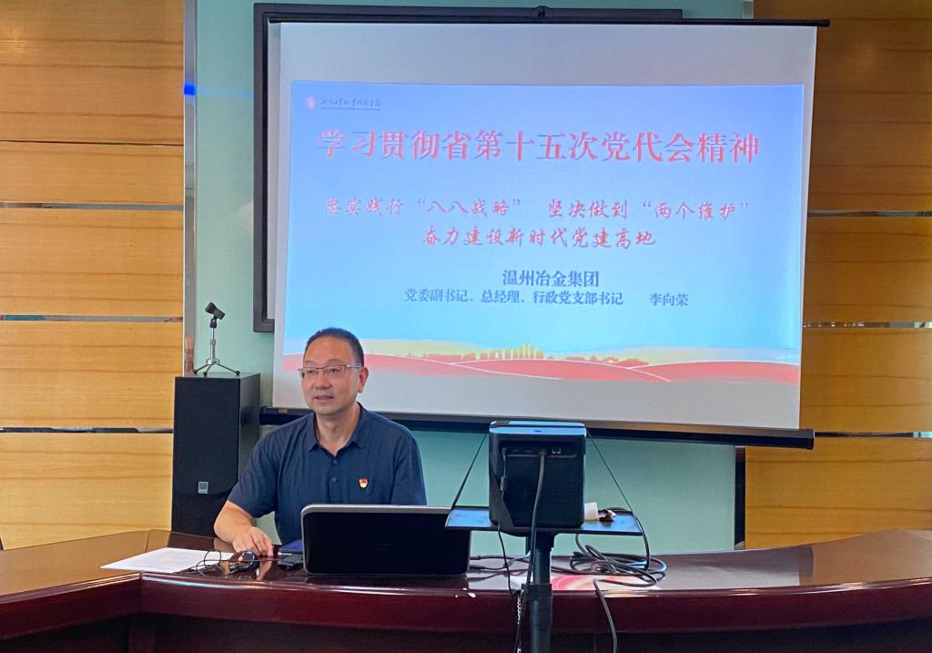 下午,温州冶金集团党委副书记、总经理李向荣到党支部开展传达学习省第十五次党代会精神宣讲,从笃行“两个维护”的政治宣言;践行“伟大思想”的行动纲领;擘画“两个先行”的蓝图路径等三个方面,结合当前工作进行部署。