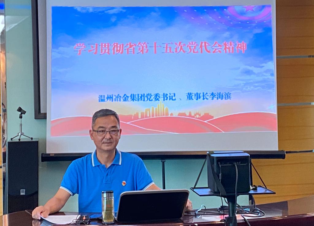 7月22日上午,温州冶金集团党委书记、董事长李海滨在公司开展基层宣讲,传达学习省第十五次党代会精神,部署贯彻落实举措。