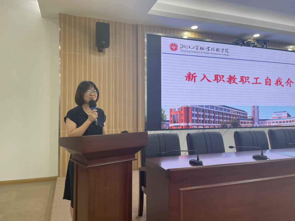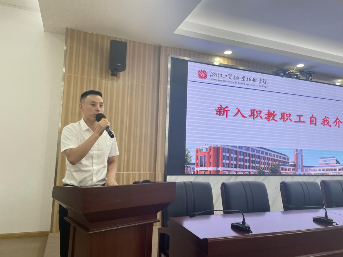 会上,学院新入职的两位教职工方浩和吴楚进行了自我介绍。