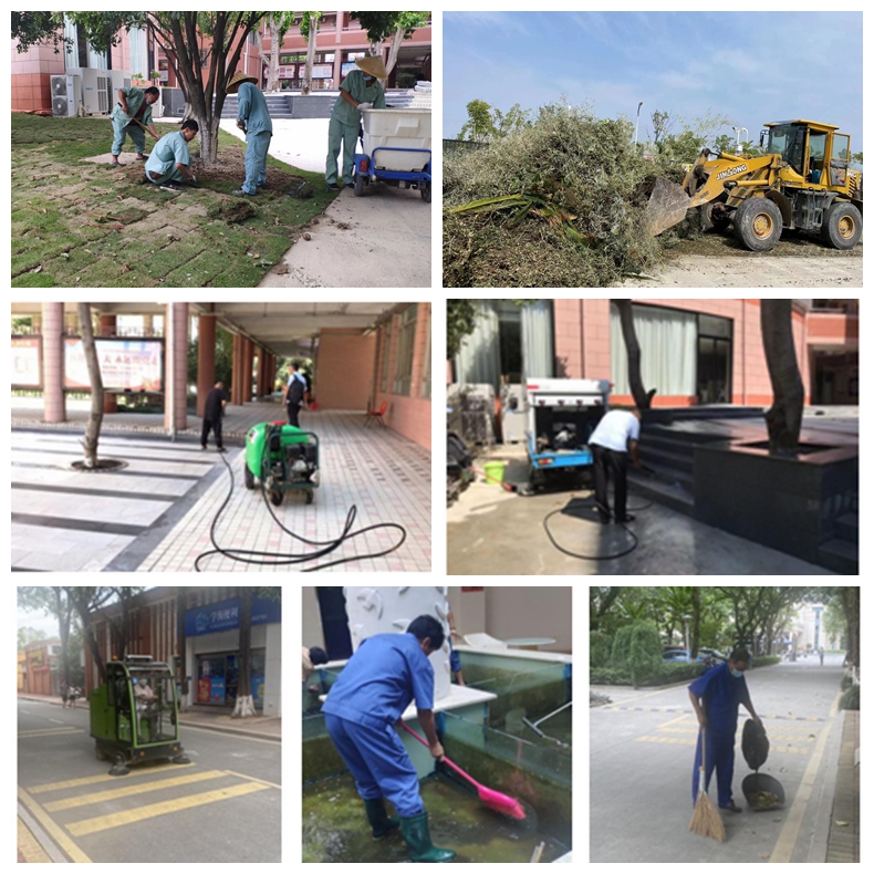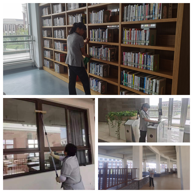 “文明始于心,洁净鉴于行”。在烈日炎炎下,保洁人员分工合作,密切配合,对校园进行全方位清扫、无死角清理,对班级教室、走廊、卫生间、厨房等公共区域进行彻底地清洁。为师生营造干净、整洁、安全、健康的生活环境。同时,绿化工人做好校园的绿化、美化及花草树木的养护和修剪工作,使新学期的校园焕发出盎然生机。