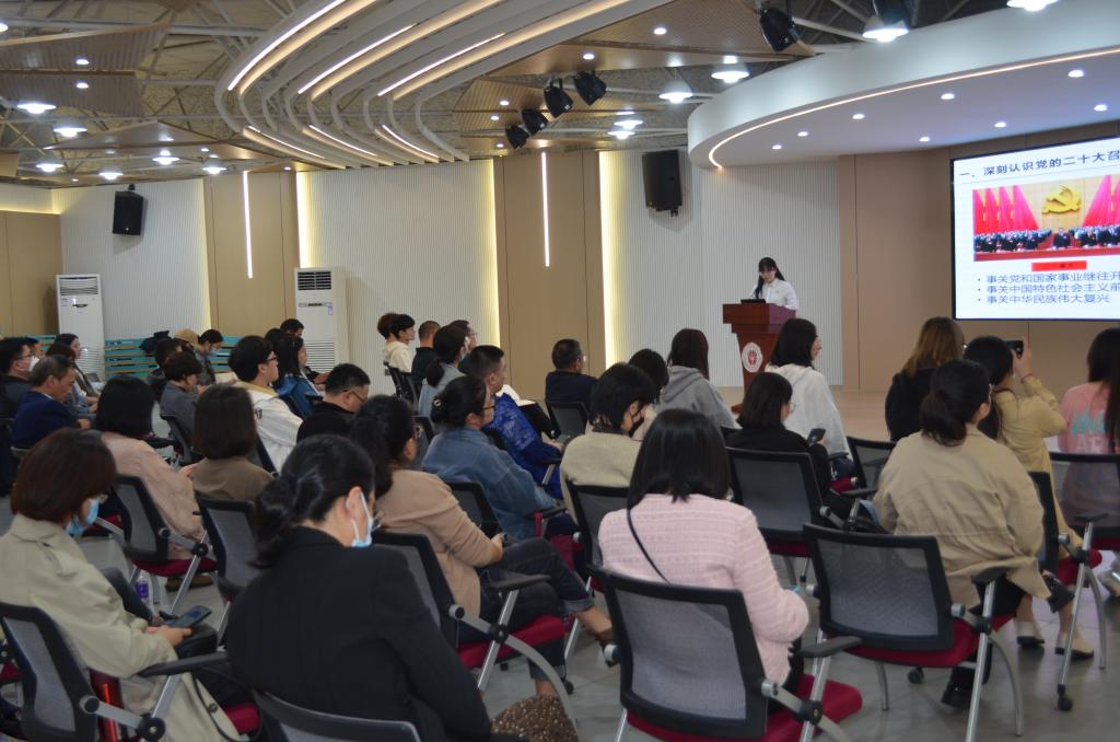 11月2日下午,我院在府东路校区多功能厅组织全体教师、学生代表集中理论学习,邀请马克思主义学院赵敏老师专题讲座,深入学习宣传贯彻党的二十大精神。