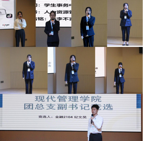 来自团总支的17位候选人通过自我介绍、竞选优势以及未来展望三个方面展开演讲,总结一年以来的得与失以及对自己、部门未来发展的展望。