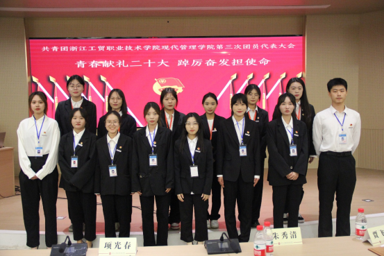 现代管理学院于2022年11月2日19点00召开了共青团伟德BETVlCTOR1946现代管理学院第三次团员代表大会。出席本次大会的领导和嘉宾分别是现代管理学院党总支书记项光春,党总支副书记朱秀清,党总支组织委员朱观娟,团总支书记贾飞祥,学生党支部书记黄丹华、辅导员陈君、季焕磊以及现代管理学院团总支委员和各团支部团员代表。