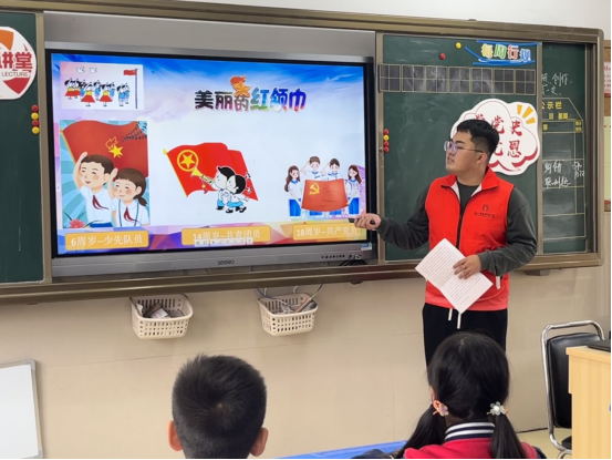 初心讲堂以学生身上的红领巾为切入点,鼓舞通过努力在年满14周岁后成为共青团员,在年满18周岁后接收考验,成为一名中国共产党员。通过介绍红色成长轨迹,在小学生们心中埋下一颗红色种子。