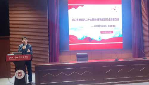 11月18日下午,一场以“学习贯彻党的二十大精神,增强旅游行业自信自强”的党的二十大精神宣讲会在学校府东路校区学术报告厅举行,现代管理学院旅游管理专业20级全体学生、旅游管理专业全体教师等参加宣讲会,现代管理学院党总支书记项光春应邀参加。宣讲会由旅游酒店专业党支部书记、旅游管理专业主任张海琼老师主持并宣讲。