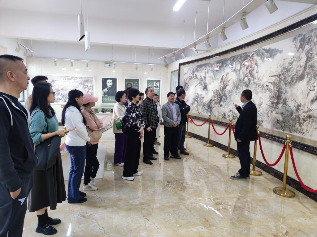 在田塘头村革命烈士纪念园和革命历史陈列馆,大家听取田塘头村老书记郑金佃介绍纪念园及田塘头村的红色文化及历史,并参观了陈文杰在田塘头村的办公地。郑书记为大家讲述了20世纪30年代以来中国共产党在田塘头村开展的革命活动以及一段可歌可泣的历史。1930年,参加过南昌起义的红十三军政治部主任陈文杰在田塘头开展革命武装斗争,仅田塘头村就有90多民村民参加了红十三军。田塘头村多次受到敌人围剿,牺牲战士群众多人。解放战争时期,田塘头村成为永嘉县委机关常驻地。温州解放战争时期最后一次战役就发生在田塘头村,牺牲了7名战士。人文学院党员老师们仔细参观了陈列馆里的展览物和历史资料,详细询问了相关细节。大家在田塘头革命纪念碑前为牺牲的战士默哀,并在村里活动中心体验了VR革命历史场景。
