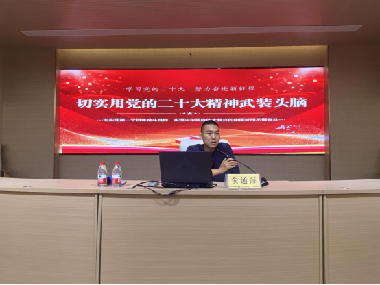 俞书记的宣讲主要从大会盛况、党的二十大报告的主要内容、如何学好党的二十大精神三个部分展开。他从“百年未有之大变局”展开,跟同学们分享学习党的二十大精神的重要意义。他通过对建党艰辛过程的生动阐述,从马克思主义中国化时代化新境界与新时代中国特色社会主义两个角度分析了中国式现代化特征,诠释了中国式现代化的丰富内涵与历史意义,引导大家更好地认识和领悟党的二十大精神。