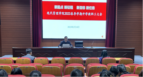 2月19日上午,现代管理学院在府东路校区学术报告厅召开2023春季学期开学教职工大会,开展师德师风建设主题教育,回顾总结现代管理学院2022年工作、部署春季学期主要工作任务。现代管理学院全体教职工参会,会议由现代管理学院副院长孙富山主持。