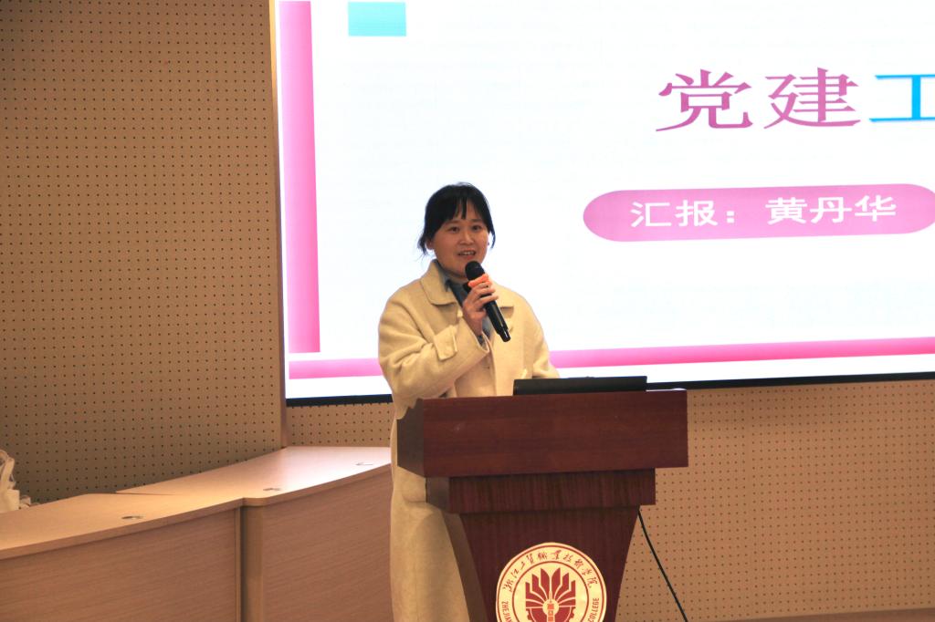 大会伊始,视频《2022,我们的红色之旅》带领学生干部一同回顾学生党建中心2022年的工作成果。紧接着,分院党支部书记黄丹华老师从队伍建设、理论教育、支部活动、助力服务和党建育人五个方面汇报支部工作。黄老师肯定了学生干部在分院建设中的重要性,也希望学生干部继续在新学期以坚定步伐,从提升榜样力、服务力和影响力三方面推动队伍建设和助力学院发展。