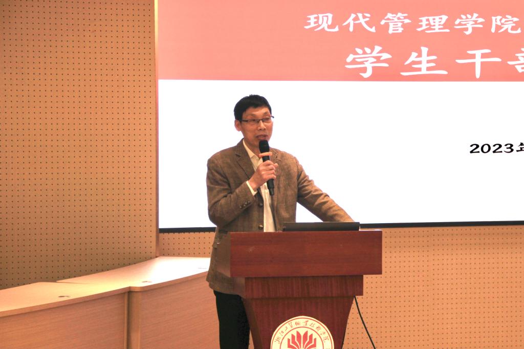 为加强我院学生干部队伍建设,进一步提高学生干部的综合素质,2023年2月19日,现代管理学院在府东路校区阶梯教室开展学生干部始业教育。出席本次大会的老师有现代管理学院党总支书记项光春、分院辅导员、学生党建中心干部和团总支学生会团学干部,会议由团总支书记贾飞祥老师主持。