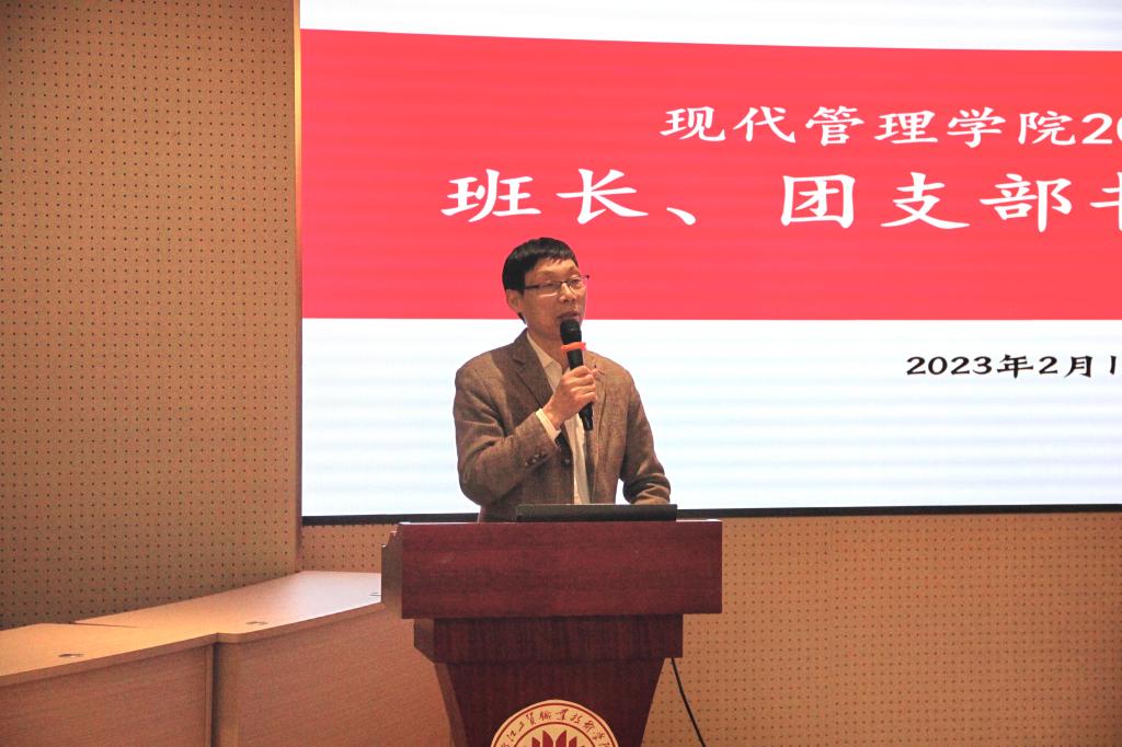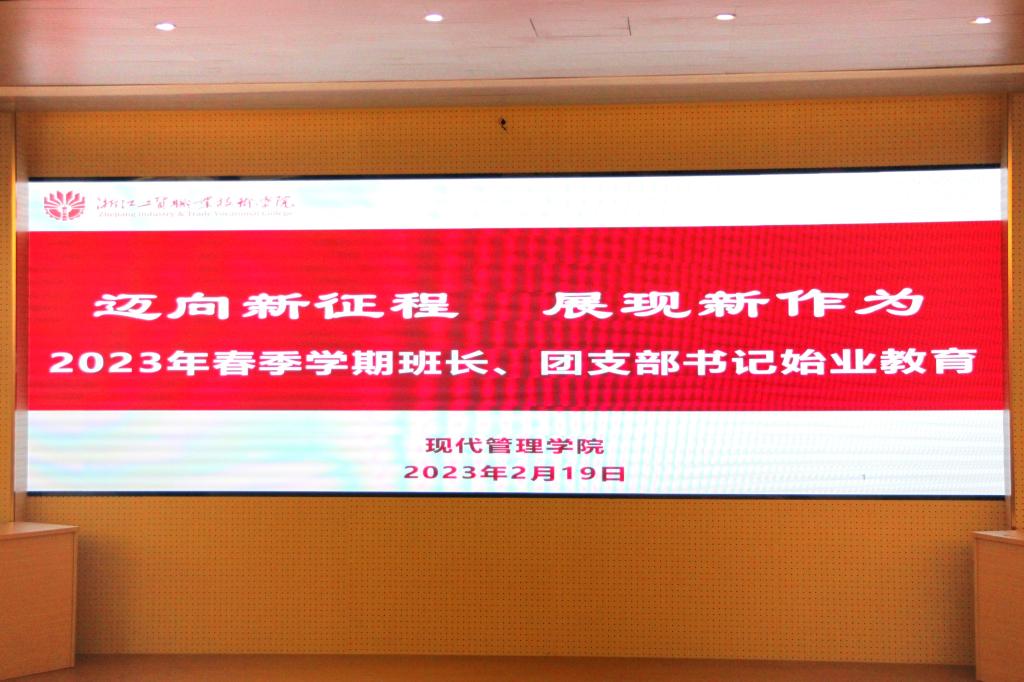 为进一步提高学校、班级工作质量,增强班级干部服务意识,2023年2月19日下午14点,现代管理学院在府东路校区阶梯教室开展班长、团支部书记始业教育。出席本次会议的老师有现代管理学院党总支书记项光春、现代管理学院辅导员和分院2021、2022级班长和团支部,会议由陈君老师主持。