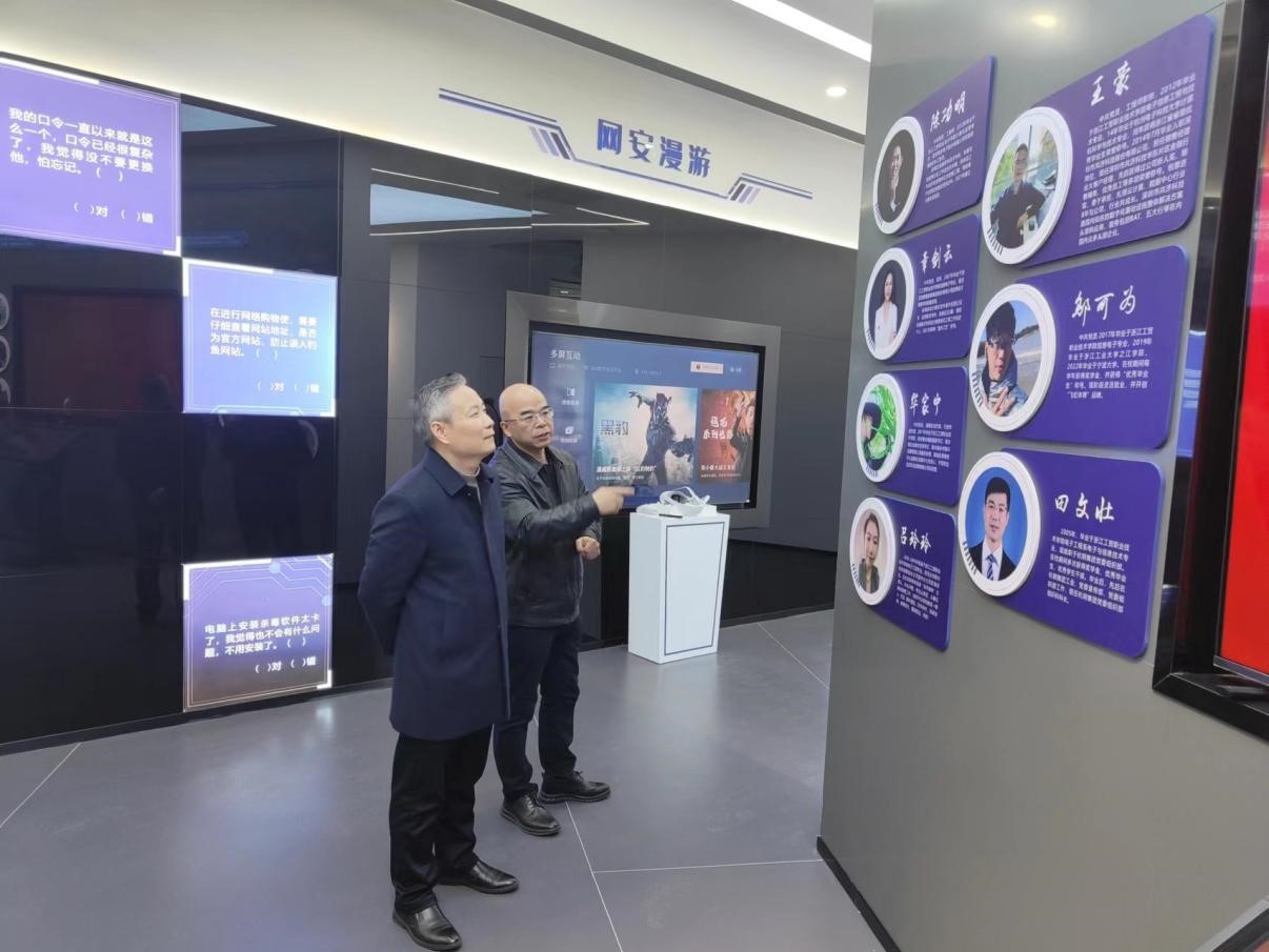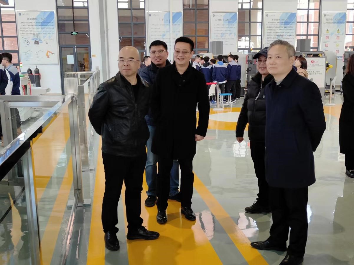 座谈会前,赵柏森等一行参观了校史馆、人工智能学院、图书馆、国家“双高”光电制造学院等场所。陪同参观调研的还有光电制造学院副院长华学兵以及双方相关部门负责人。