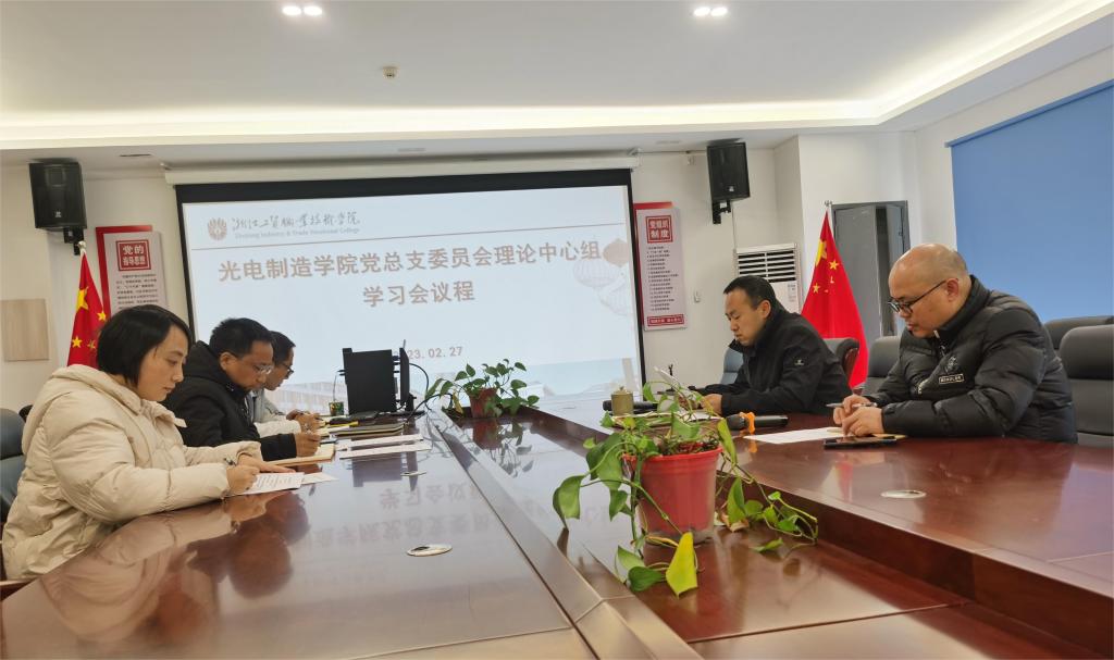 为深入学习党的二十大精神,2月27日,光电制造学院党总支理论中心组学习习近平总书记在党的二十大精神研讨班开班式上的重要讲话精神。全体党总支委员参加,会议由党总支书记骆毅主持。