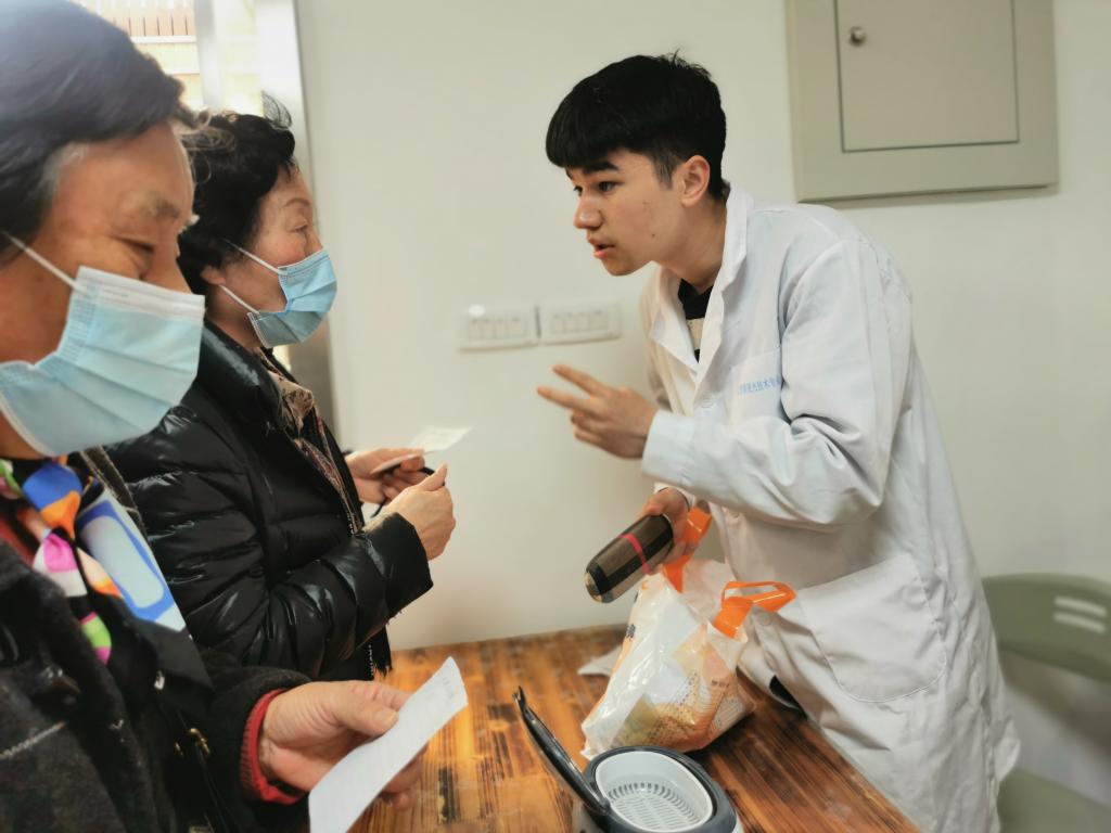 “我的眼睛经常像刀割一样,小伙子,你快点给我检查下,看看这是怎么回事呀?”来自金庄花苑的王奶奶在志愿者赛米热·阿不都萨塔尔的搀扶下走到仪器前说道,“奶奶,您可能得了睑板腺功能障碍,这是一种眼部疾病,会引发干眼症,严重起来就会有刀割的感觉呢……痛起来的时候您可以用温热毛巾敷半个小时,但是一定要定期去医院检查。”工作室教师麻尚晟检查后贴心叮嘱道。