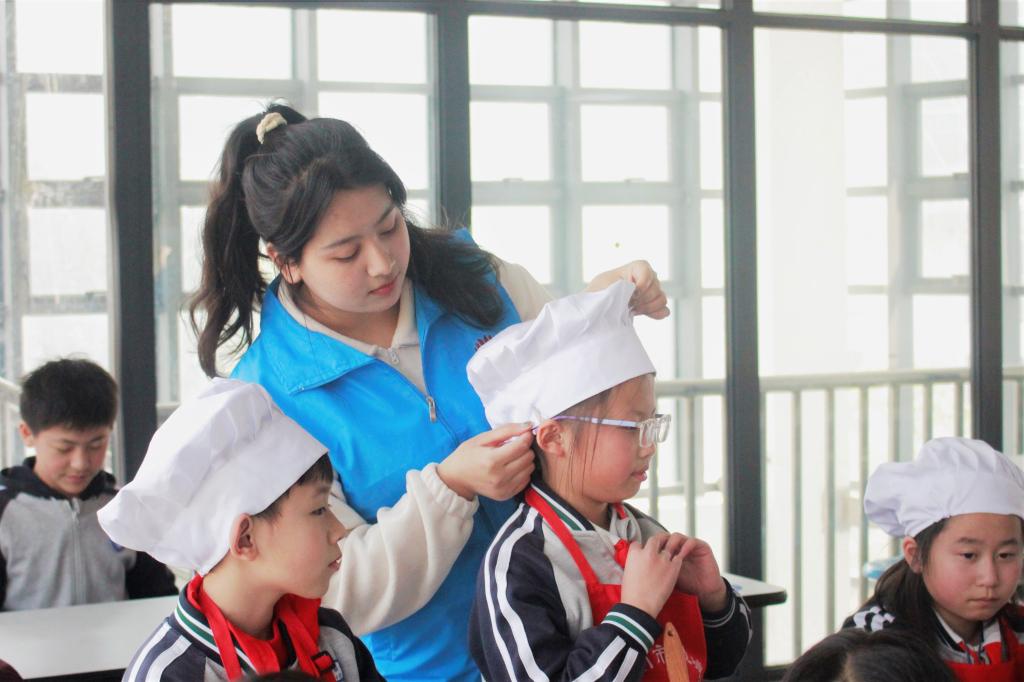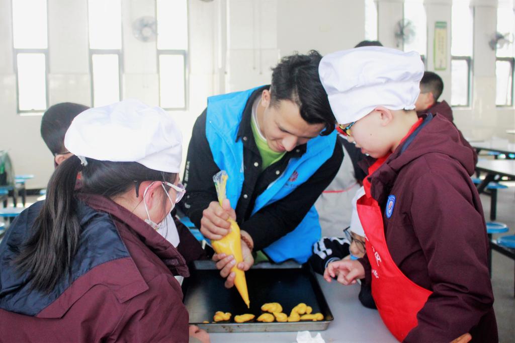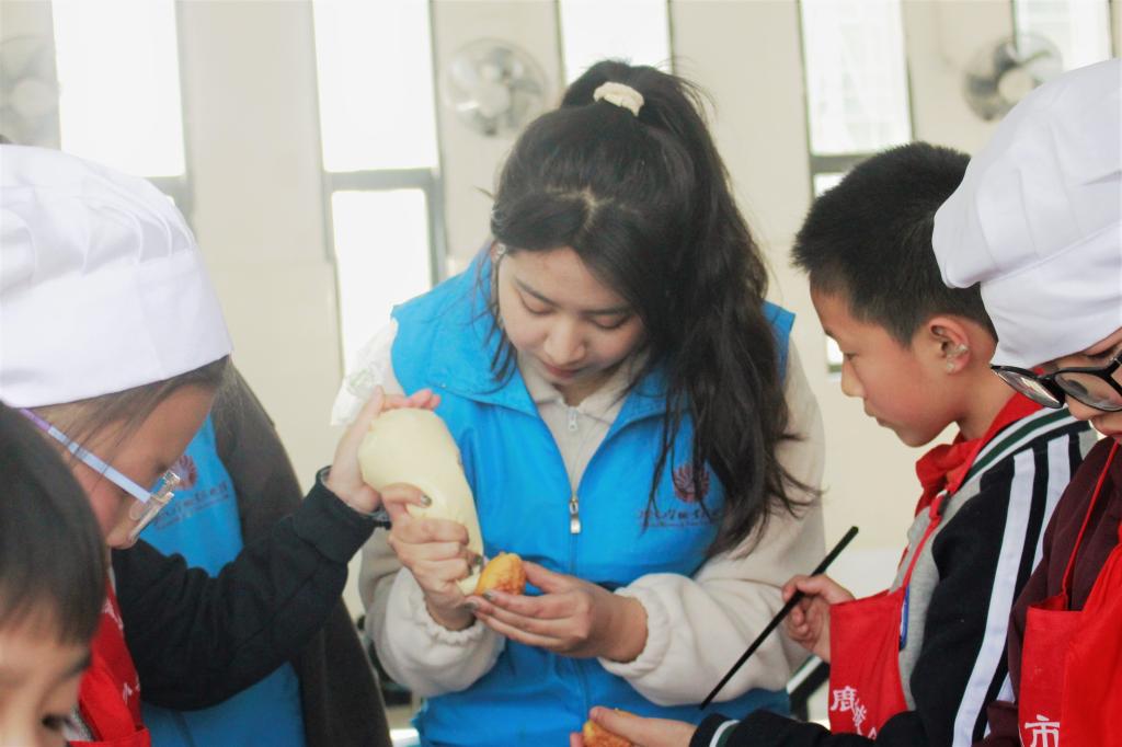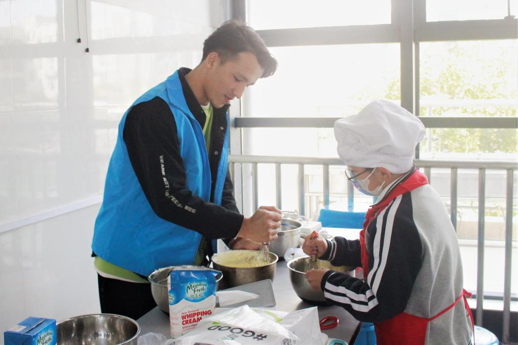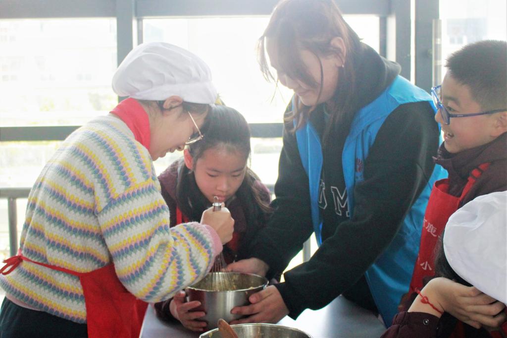 大一新生苏比努尔·麦麦提艾力第一次走进小学当志愿者,“我自己也喜欢烘焙,想着可以帮小朋友学习烘焙,但是发现温州的小朋友好厉害,挤奶油、烤曲奇拿捏的准准的,我也学到了不少技能。”苏比努尔夸赞道。