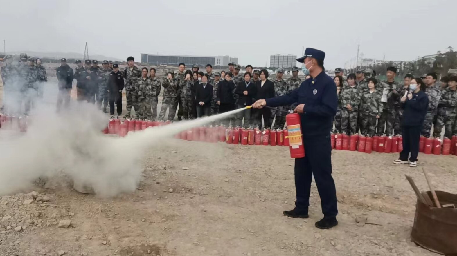 消防讲座后,全体人员集合于瓯江口校区西南门的工地处,紧接着开展现场消防灭火演练。活动现场,乔军辉警官和陈玲玲警官现场系统讲解了不同火灾的灭火方式、灭火器、消火栓的使用方法、疏散逃生法则等消防知识,现场演示了灭火器的使用要领,并让校护卫队员和大一新生们动手使用灭火器进行灭火。