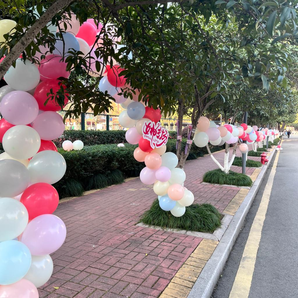 在学校主干道上,后勤员工与同学们采用花艺、气球、彩带等材料装扮沿路树木,编织彩色气球拱门,搭建女神节打卡相框,全面营造活动现场氛围。同学们为女教职工们送上提前准备好的永生花手工艺品与祝福贺卡,只为给她们留下难忘的一刻。