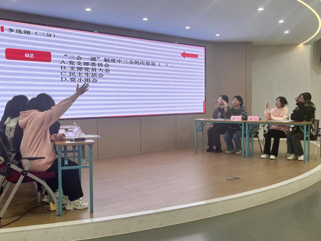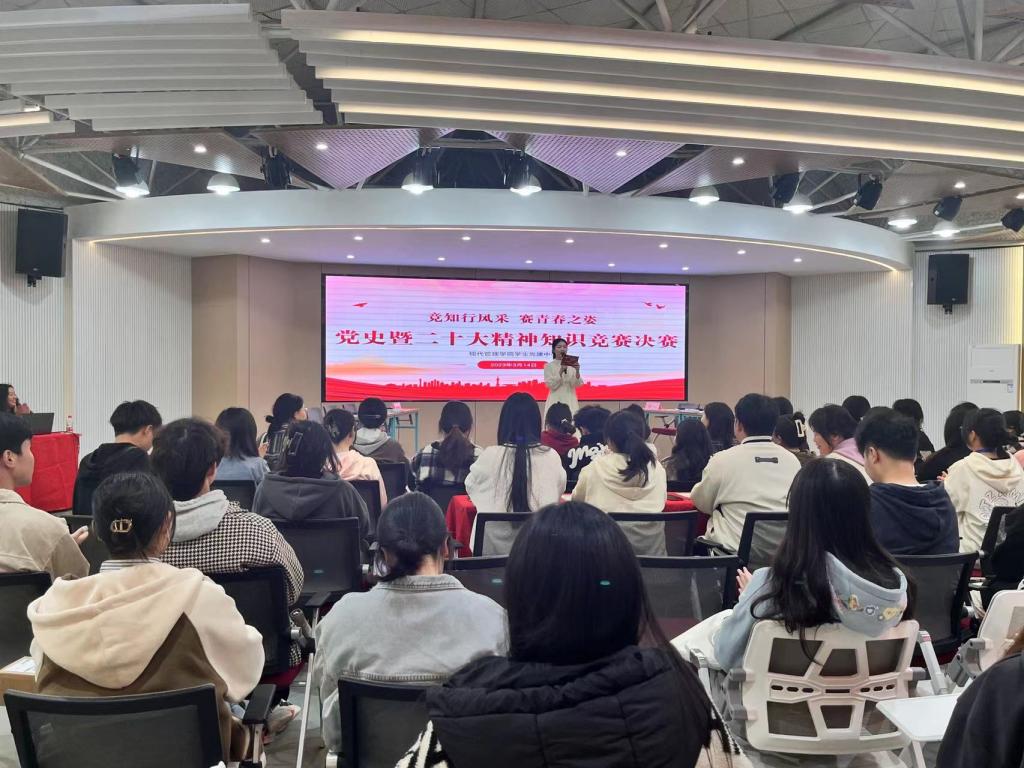 以赛促学,增强创业奋斗之志;学深悟透,用党的成功经验指导实践。为了强化入党积极分子对党史、党章的理解和掌握,2023年3月14日晚上,现代管理学院学生党支部在多功能厅举行“竞知行风采 赛青春之姿”党史暨二十大精神知识竞赛决赛。