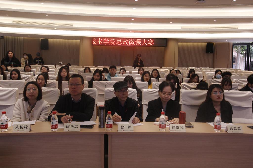 为深入学习宣传贯彻党的二十大精神,贯彻落实省第十五次党代会、省第十五次团代会精神,进一步强化对高校青年学生的思想政治引领,带领团员青年忠实践行“八八战略”,坚定捍卫“两个确立”,坚决做到“两个维护”,唱响“我在窗口写青春”最强音,我校于3月18日在府东路校区一号楼阶梯教室举办了“学习二十大 永远跟党走 奋进新征程”2023年度思政微课大赛,活动邀请了温州市演讲与口才协会副会长兼朗诵协会会长、我校原知识产权服务园党支部书记徐辉老师,学校党委组织部(统战部)副部长应马忠老师,人工智能学院徐群和老师,国际商贸学院朱杨琼老师,人文学院徐淼淼老师担任评委,来自各二级学院共计300余名观众参加了本次活动。